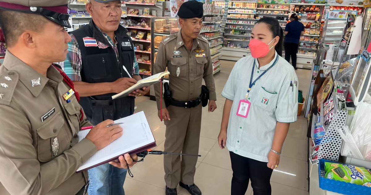 และ เจ้าหน้าที่ตำรวจสภ.บางตะบูน ซักซ้อมแผนเผชิญเหตุปล้นร้านสะดวกซื้อ