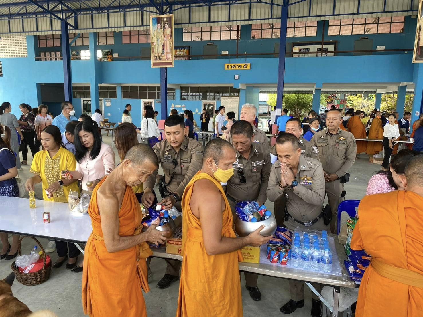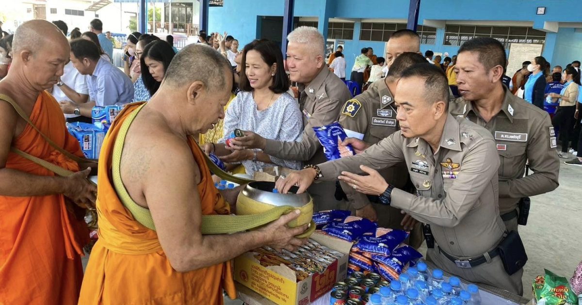 พ.ต.ท.ชาญชัย ศรีสำราญ สว.สภ.บางตะบูน พร้อมด้วยข้าราชการตำรวจ สภ.บางตะบูน ร่วมตักบาตร โรงเรียนวัดปากอ่าว