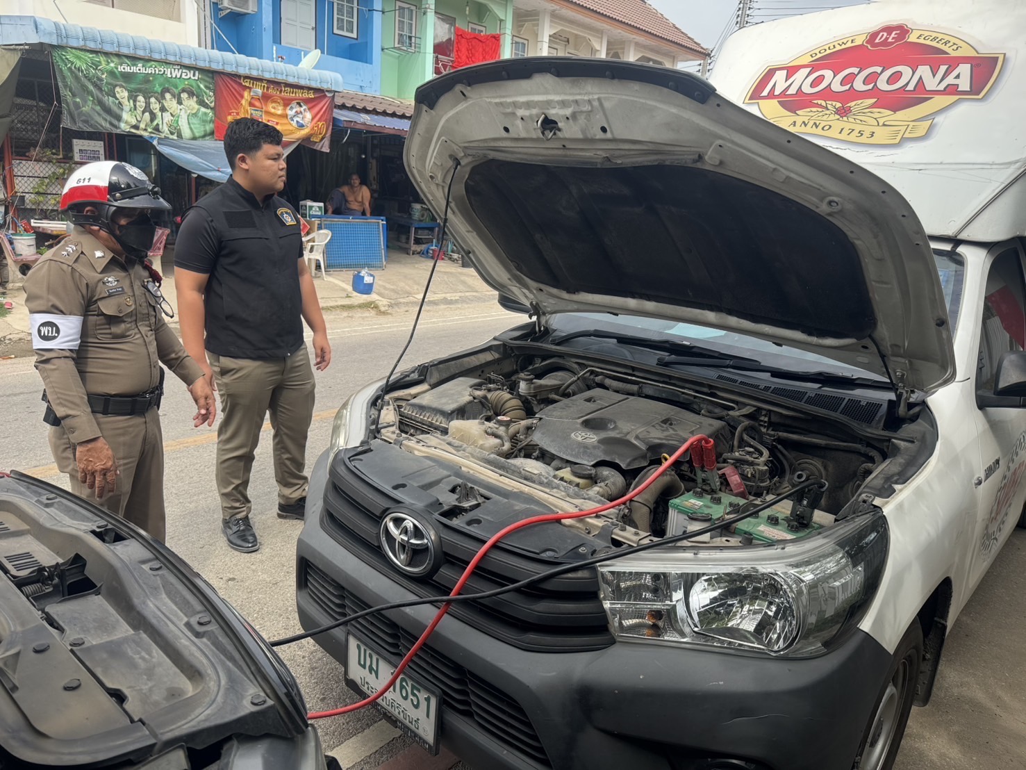ร.ต.ท.กิติพงษ์ วงศ์เปี่ยมทรัพย์รอง สว.(ป)ฯเวร 20 สายตรวจรถยนต์ ว.4 ช่วยเหลือประชาชน รถแบตหมดให้สามารถเดินทางต่อไปได้ ณ บริเวณถนนริมสายบางตะบูน ต.บางตะบูน อ.บ้านแหลม จ.เพชรบุรี